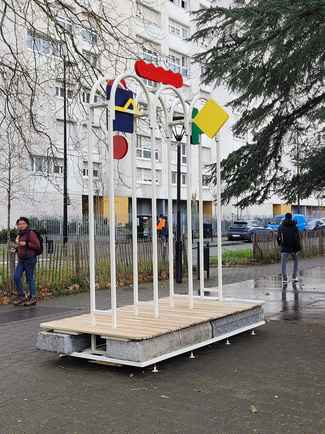 À partir de leurs récits, nous avons imaginé, avec une dizaine de jeunes du quartier, des structures ou instalations qui feraient écho aux souvenirs des plus ancien·nes habitant·es et permettent aux plus récent·es de découvrir leur quartier. L’occasion, finalement, de ne pas oublier le passé, tout en profitant de nouveaux espaces de qualité dans le quartier. Le collectif à côté à ensuite conçu et construit ces structures.