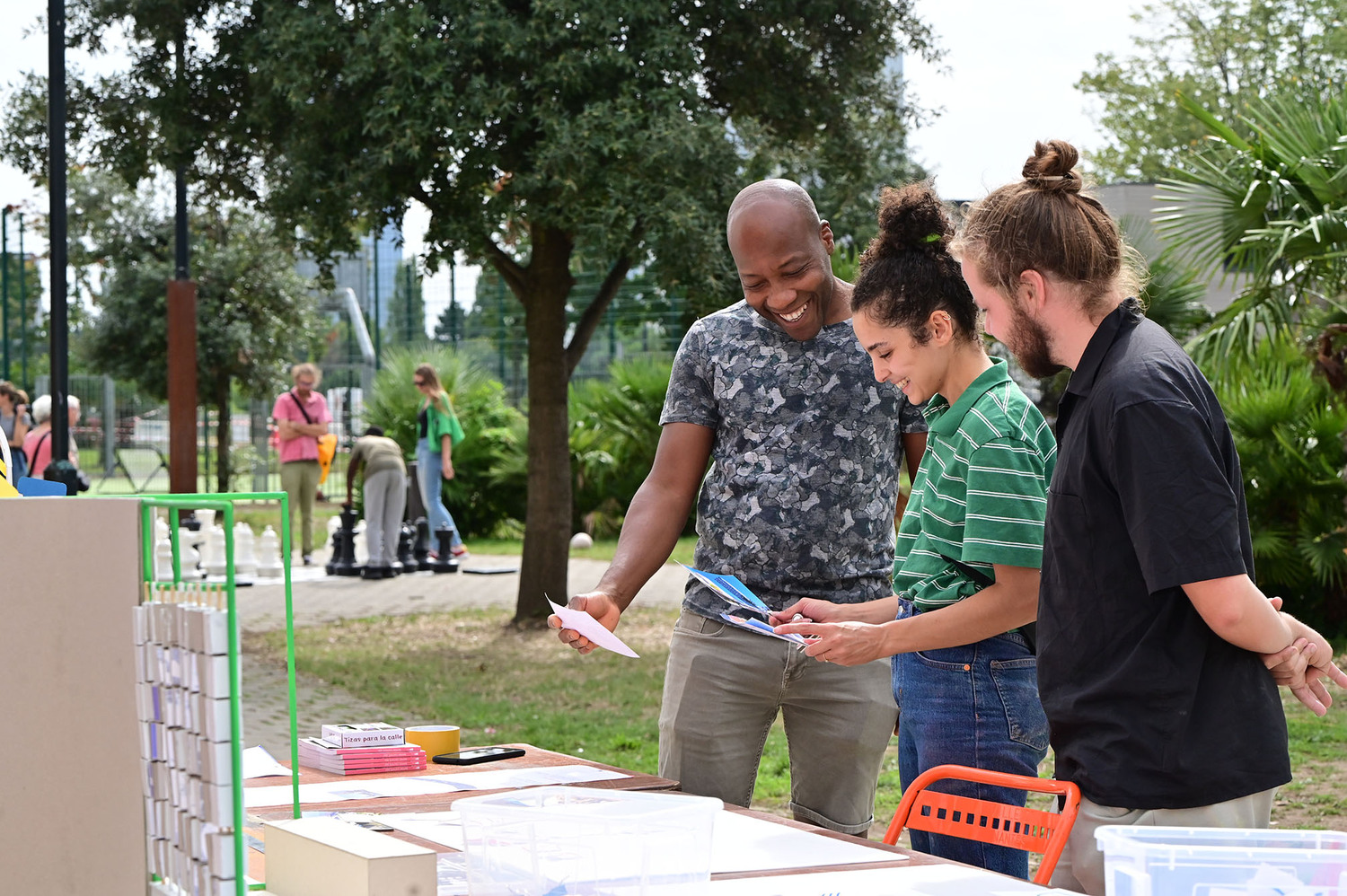 Impossible de mener une réflexion sur la mémoire du quartier sans associer étroitement les personnes concernées. Nous sommes donc allé·es à la rencontre des habitant·es et acteur·ices du quartier. Muni·es d’une grande maquette du quartier, nous déambulions en triporteur pour recueillir leurs plus riches souvenirs d’habitant·es et témoignages afin de faire émerger des histoires partagées par le plus grand nombre.