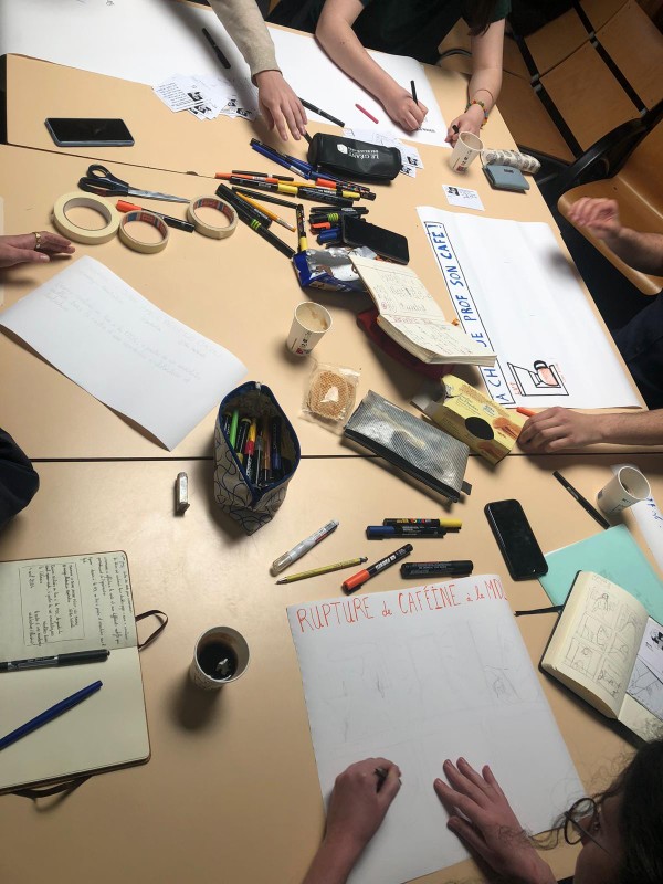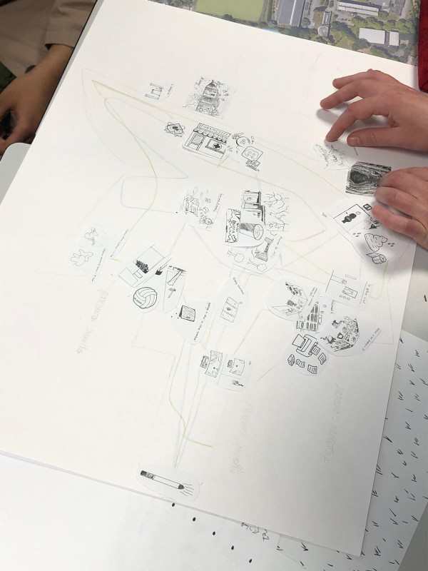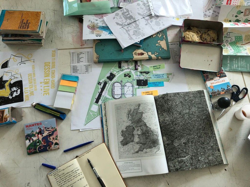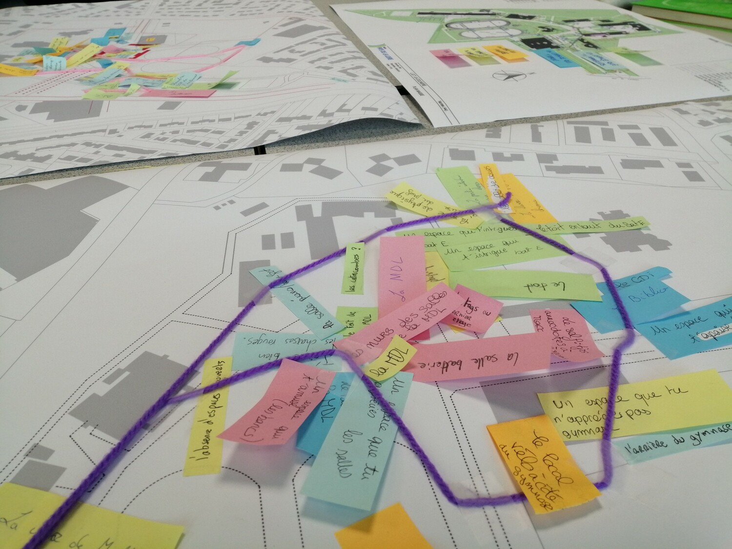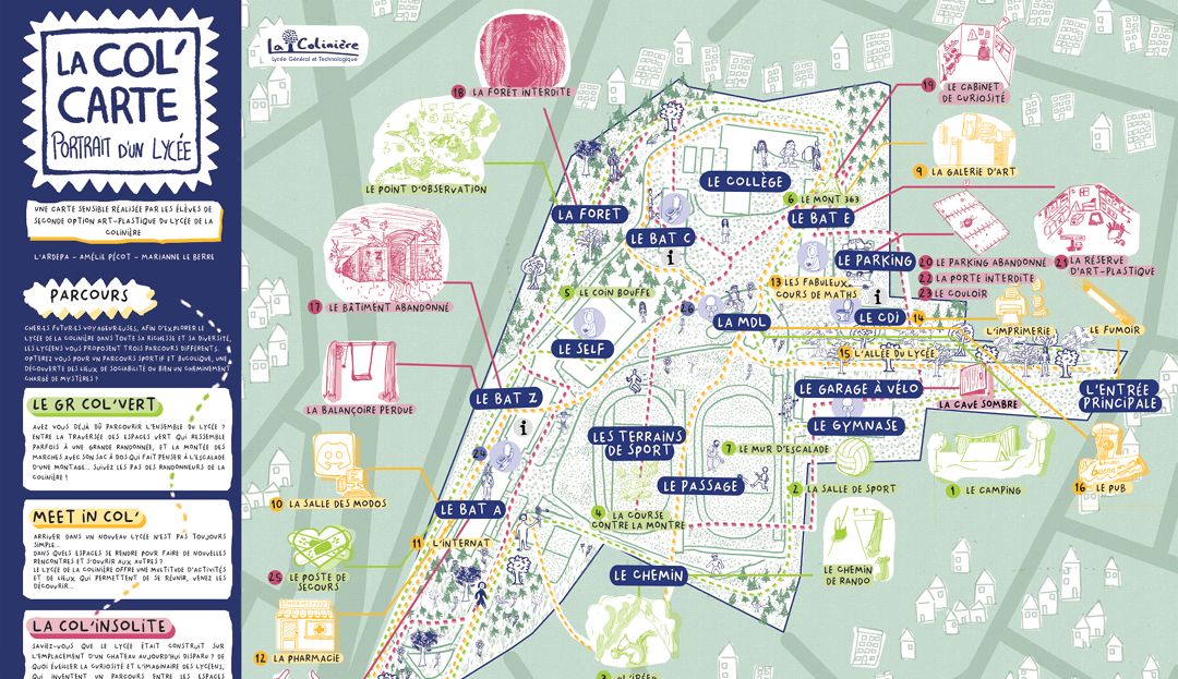 C’est seulement après avoir arpenté ensemble l’établissement, recueilli des images et des anecdotes, que ces questions ont pu être travaillées collectivement. Les recherches et réflexions ont conduit petit à petit à la réalisation d’une carte sensible et d’un livret. Ces objets graphiques témoignent ainsi du vécu et du